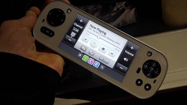 Poniżej widać gamepada, który jest też pilotem do wszystkiego, dodatkowym monitorem oraz słuchawką do telefonu satelitarnego. Kawy nie robi, lodów nie serwuje, niestety😊