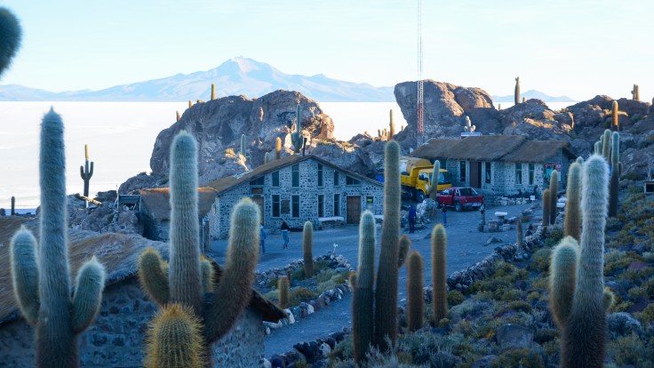 Dojechaliśmy do wyspy Isla Incahuasi. Sprawnie wychodzimy z samochodu i po kupieniu biletu zaczynamy powoli wspinaczkę na szczyt góry. Do pokonania mamy 56 m w górę. Może to i nie dużo ale jak napiszę że do pokonania mamy 3656-3712m to wtedy ten marsz nabiera innego wymiaru