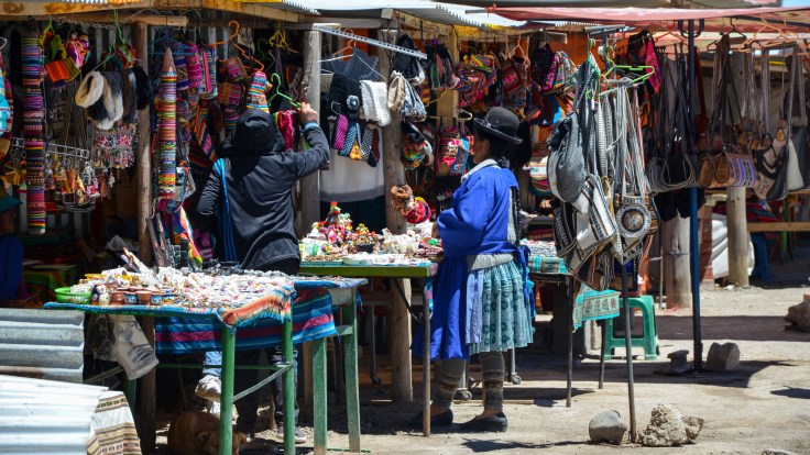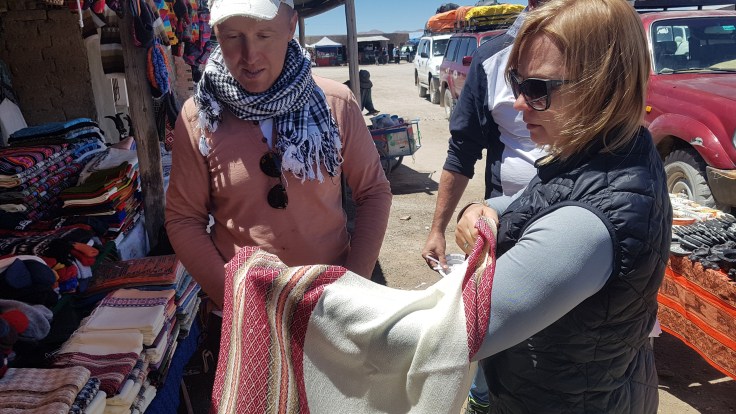Jedziemy dalej, opuściliśmy już teren solniska i dojechaliśmy do przedmieścia Uyuni. No i co tam może być? Bazarki! Oczywiście! Czas na kupowanie pamiątek.