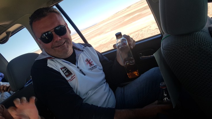 Trochę nudno więc Jack wyjął zapasy z bezcłówki i polewa. Dobrze że droga całkiem równa…
