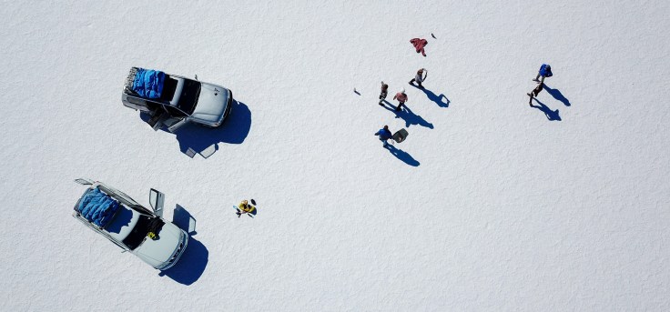 Jak to tutaj jednak bywa, za daleko nie ujechaliśmy. Tym razem Marcian zatrzymuje samochód w szczerym polu, to znaczy w szczerej soli, czy jakoś tak powinno się powiedzieć.