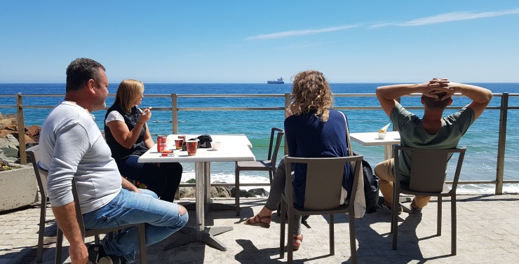 Po leniwym spacerku wzdłuż wybrzeża znaleźliśmy jakąś już czynną kafejkę z pięknym widokiem na wodę.