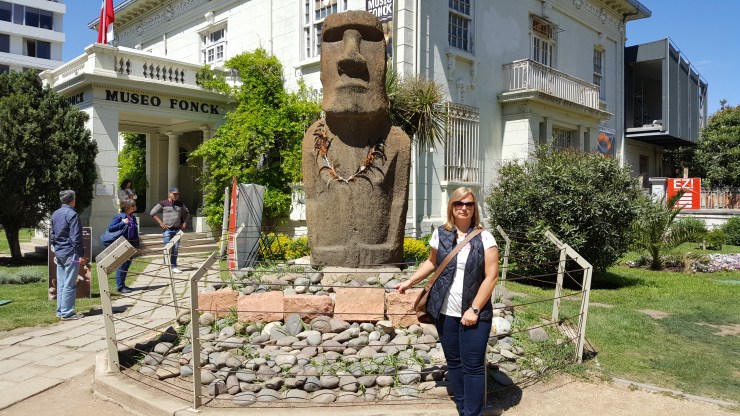 Po kawie i lodach, wsiadamy do samochodu aby podjechać kilkanaście kilometrów do sąsiedniej miejscowości Valparaiso. Po drodze jeszcze zatrzymaliśmy się w miejscu gdzie stoi przywieziony z Wyspy Wielkanocnej oryginalny Moai, taki malutki ale autentyczny!